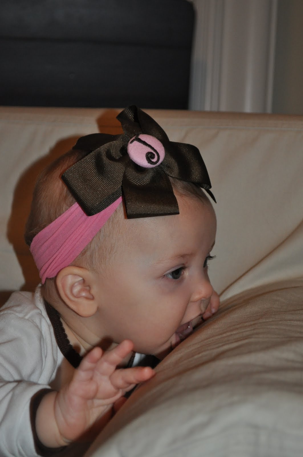 These bows are great and the monogram button is a perfect touch of personalization. I got the band from a friend who has a GREAT site www.avaclaires.com (she also writes an incredile blog, www.spitupandheels.com). She is so sweet, she allowed me to list a couple of things on her site, and she used my sweet little girl as a model, thanks S.